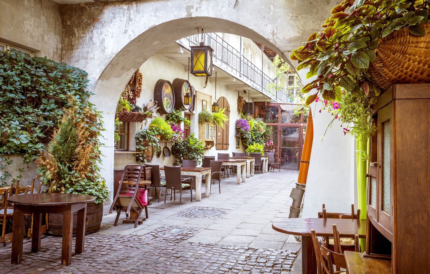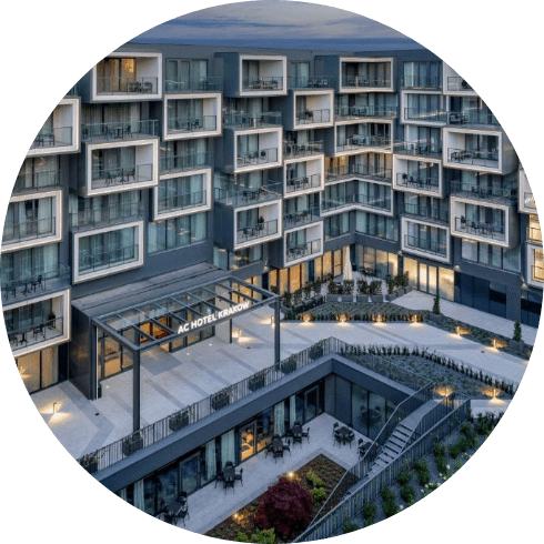 Explore our main location, where modern design and touch of local charm are combined. Sophisticated and comforable rooms, one-level glazed restaurant with specious summer garden, SPA zone with swimming pool, jacuzzi, sauna and gym. Fully at your disposal! Did I mention that our Venome Conference is taking place in there? Well, it is. Get ready for more, we're just getting started!